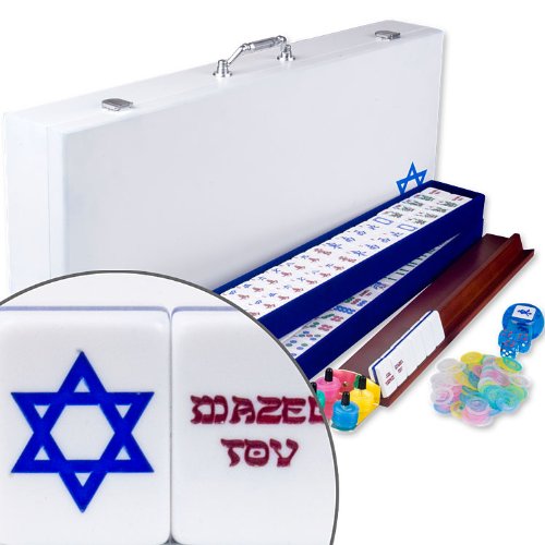 Yellow Mountain Imports , Get in the spirit of this favorite Jewish pastime with the ''Mazel Tov'' set. The tiles are white with blue stripes down the center of the sides, a Star of David on the back and the words ''Mazel Tov'' for all the joker tiles. This set has 166 tiles, including all the 144 tiles for classical Chinese play as well as an extra 22 tiles for the American version of the game. With this set you can comfortably play either version. To play the Chinese version simply use the red dragons as the 'hong zhong' and the green dragons as the 'fa' tiles.