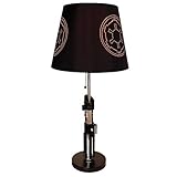 - Add ambient light and an air of elegance to your room! Table lamp based on the lightsaber carried by Darth Vader. Star Wars-themed lighting fixture measures 26-inches tall. The shade shows the emblem of the Galactic Empire on three sides!